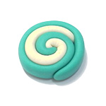 ひらべったい ねんどを 2ほん つくる。しろい クリームは、すこし みじかめにする。これが、わざじゃ。