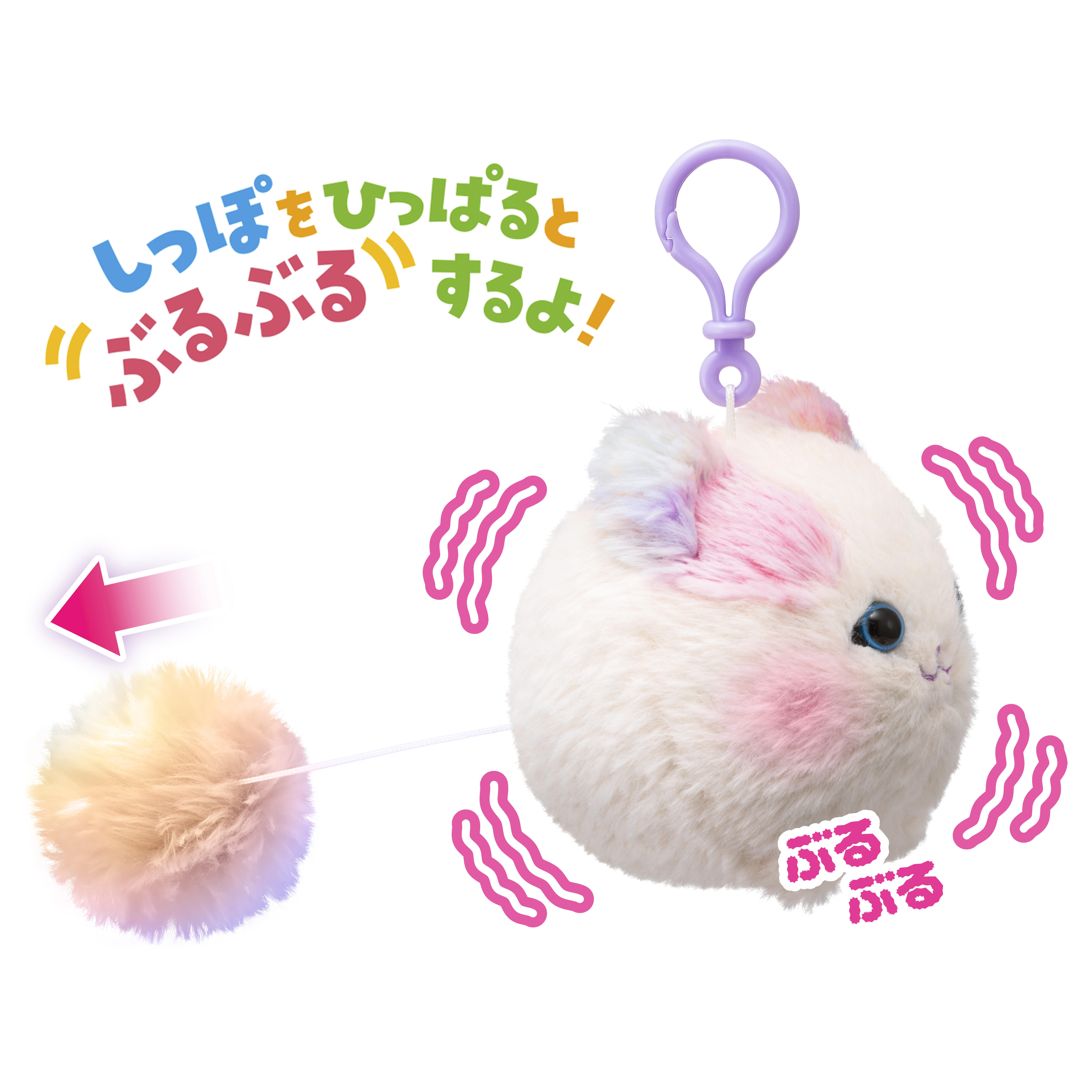 ● 虹色のしっぽを引っ張るとぶるぶる震えます。